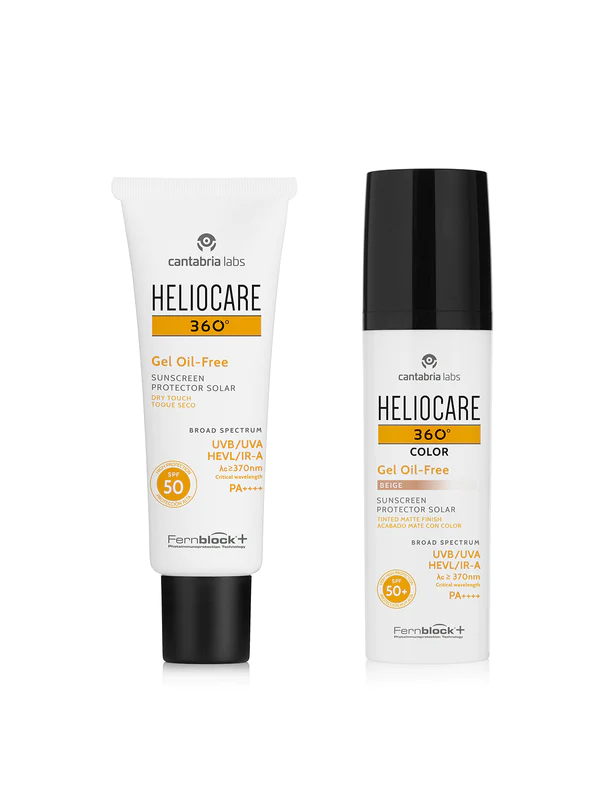 Mattifying, sebum-controlling, and non-comedogenic, the Heliocare 360° Oil-Free Gel and Oil-Free Gel Color are the perfect daily sunscreen duo for those with combination, oily, or spot-prone skin.