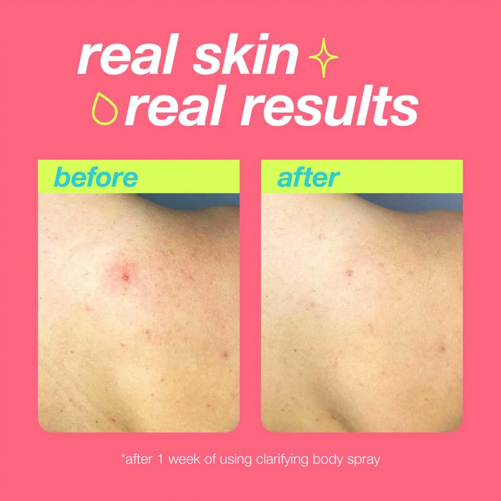This breakout-fighting back spray acts fast on those hard-to-reach areas to help clear clogged pores and minimise future breakouts. The refreshing mist even disperses upside-down so you’ll never miss a spot. Exfoliating Salicylic Acid helps to remove dead skin cells, while soothing Witch Hazel, Tea Tree Oil and Moroccan Argan Oil balance oil and reduce redness. Ideal for use after the shower, post- workout or even on the go.